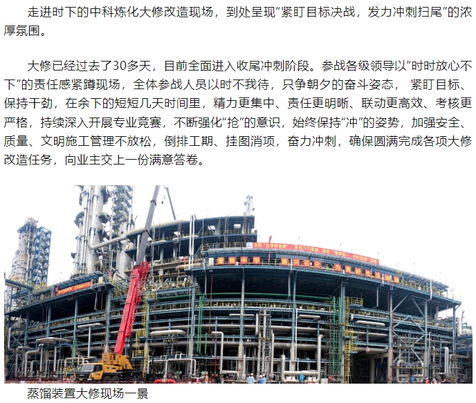 緊盯目标決戰 奮力沖刺掃尾——走馬2024年中科煉化裝👨‍🦰置大修😘改造大會戰現場
