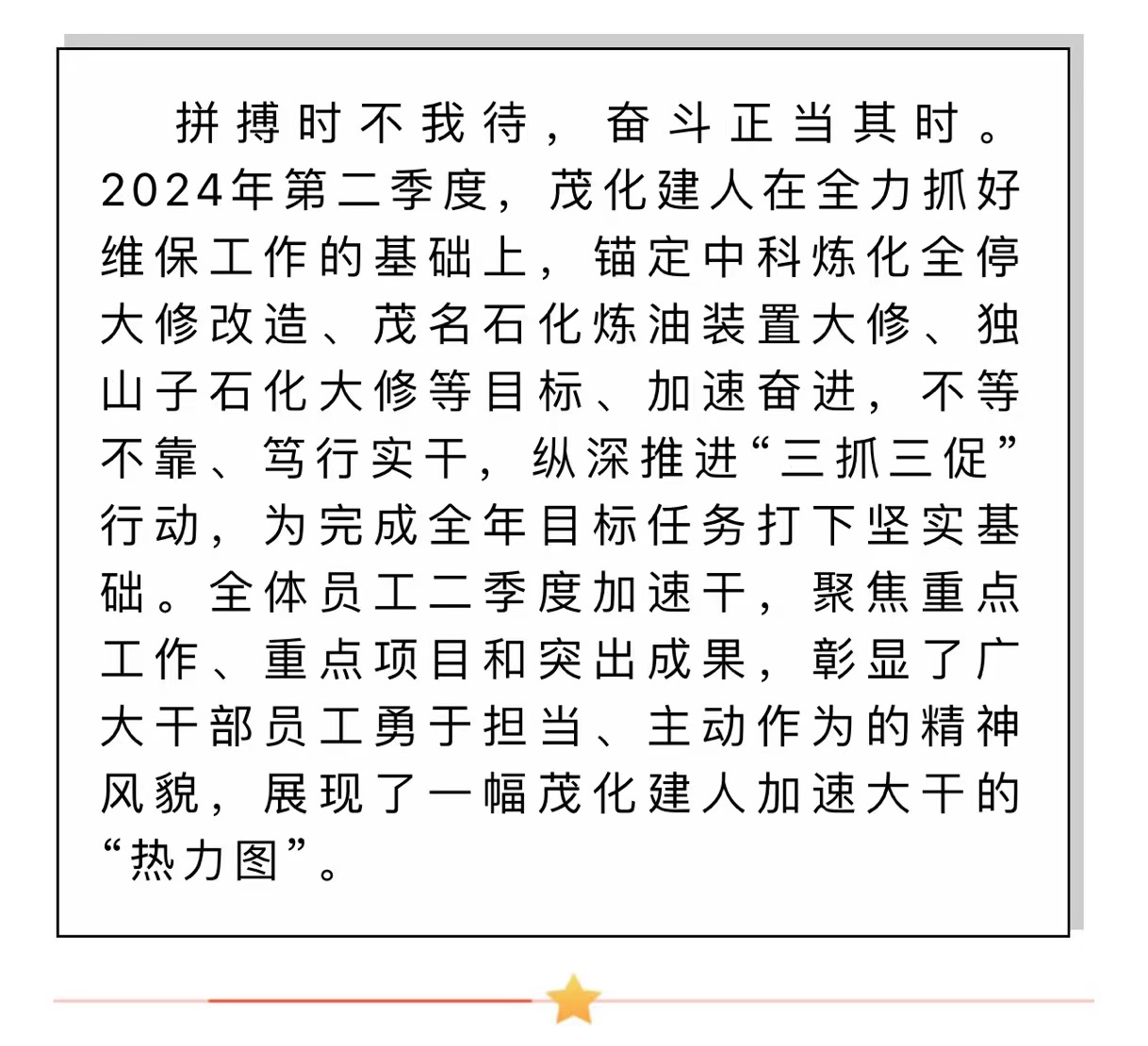 二季度 加速幹丨一起來看茂化建人“熱力圖”