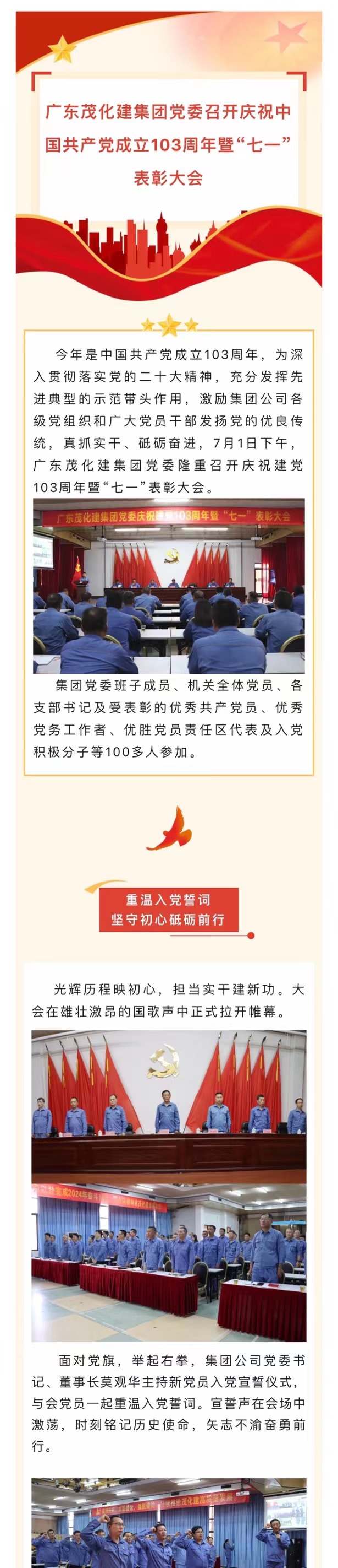 廣東茂化建集團黨委召開慶祝中國共産黨成立103周年暨“七一💁🏼‍♀️”表彰大會