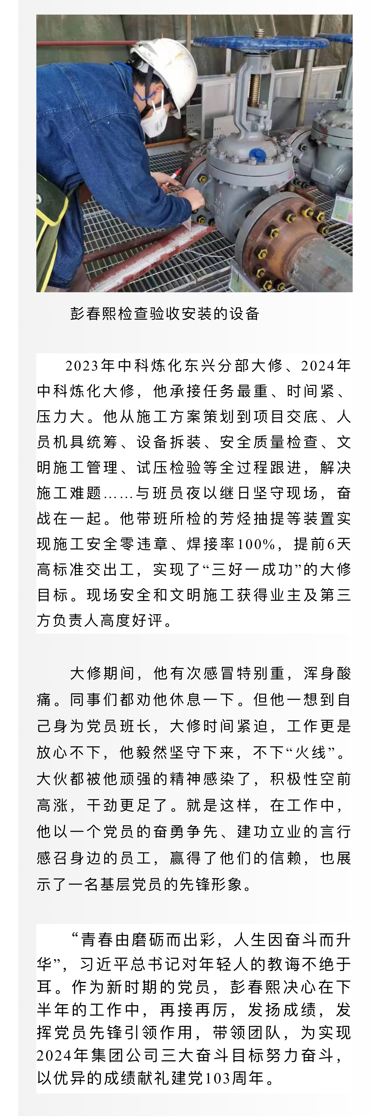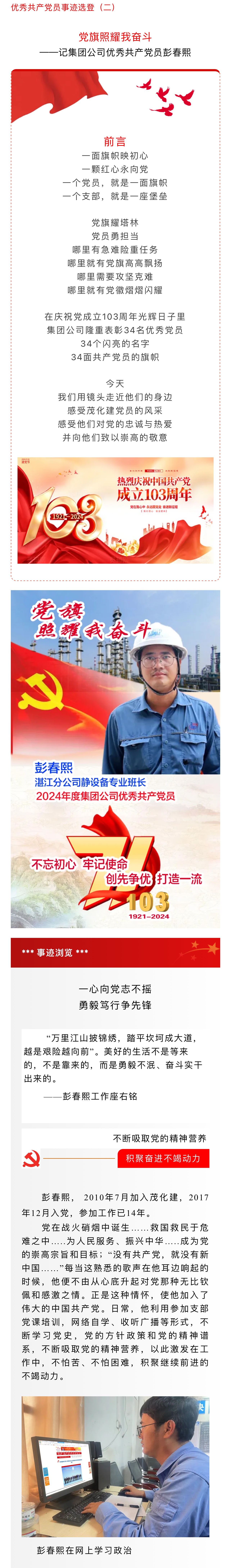黨旗照耀我奮鬥——記集團公司優秀共産黨員彭春🙈熙💑🏾