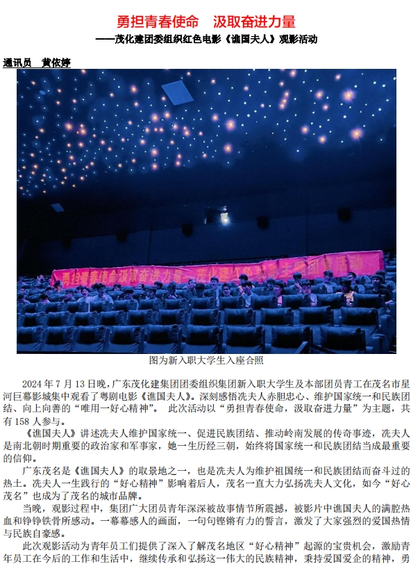 勇擔青春使命 汲取奮進力量 ——茂化建團委組織紅色電影《谯國夫人》觀影活動