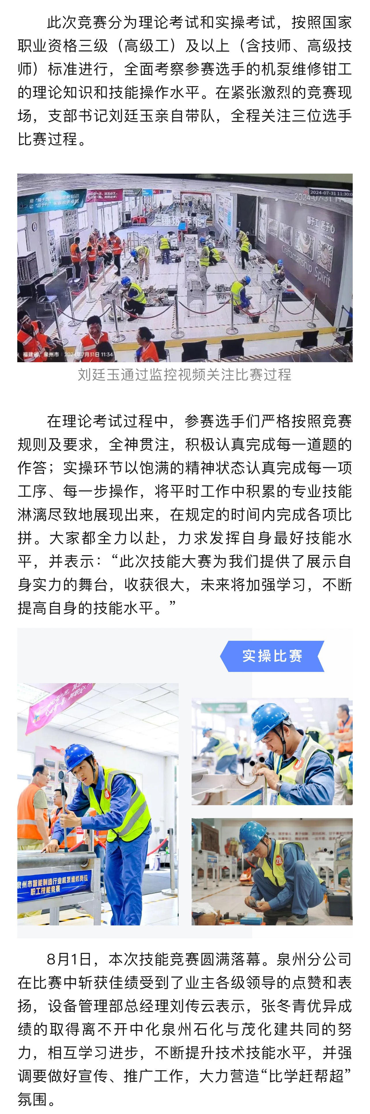 泉州分公司在泉州市維修機泵技能競賽創佳績